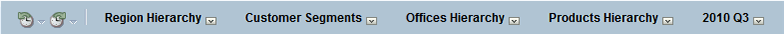 You use this area to temporarily pin or set values for the dimensions. When you pin a dimension, the data in the scorecard is filtered to give you a new point of view (that is, a new view of the data). This enables you to focus on specific data of interest to you, such as the area of business for which you are responsible.